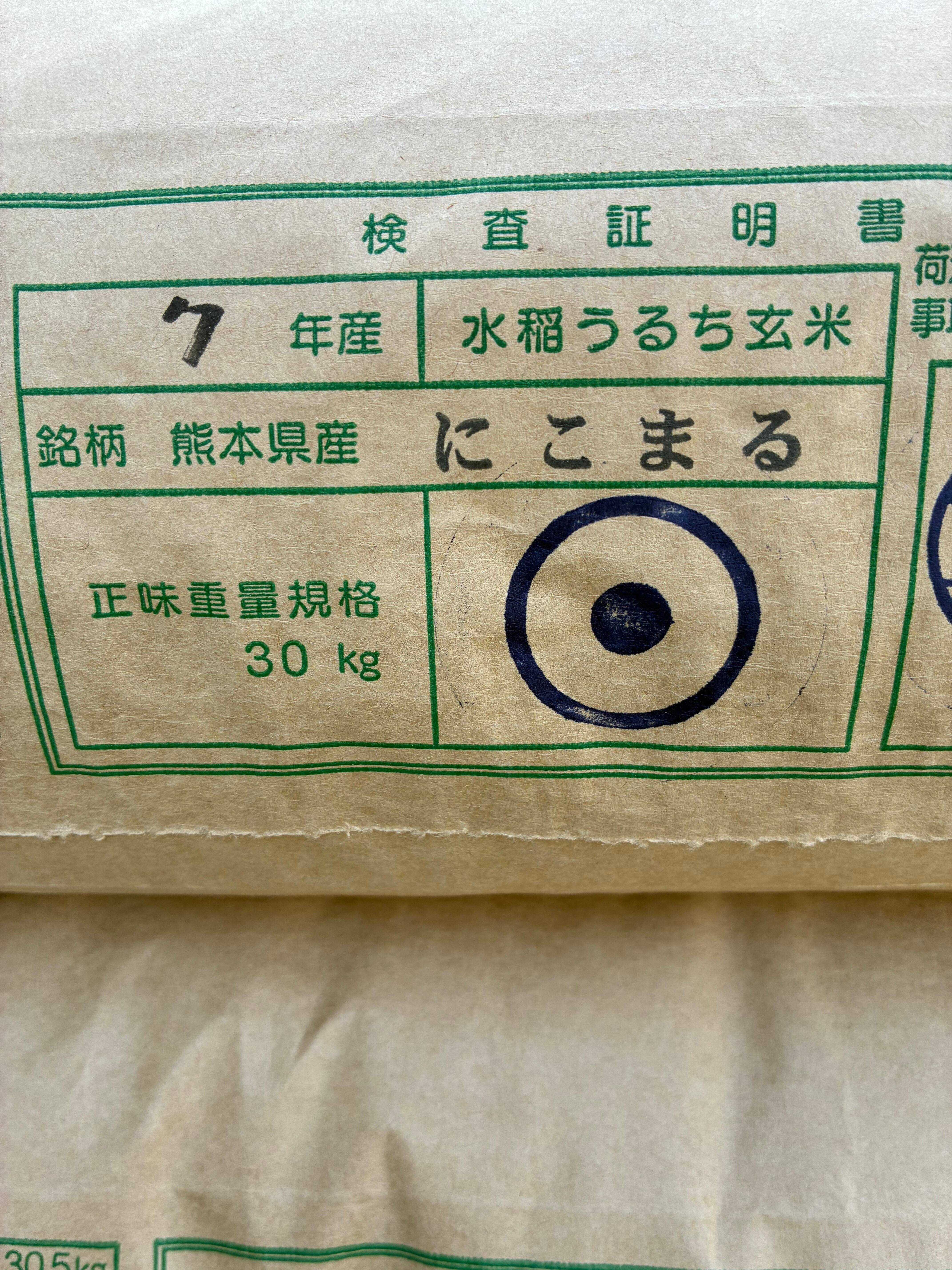 「にこまる」の名前の由来は、ニコニコ笑顔がこぼれるほどおいしい品種であることと、丸々とした粒張りのよさとを表現したものです。特徴は、丸く大きい粒と、粒ぞろいがよく、一粒一粒がしっかりしている事、炊き上がりのご飯の艶が良いです。「ヒノヒカリ」よりは、やや柔らかい食感が特徴です。